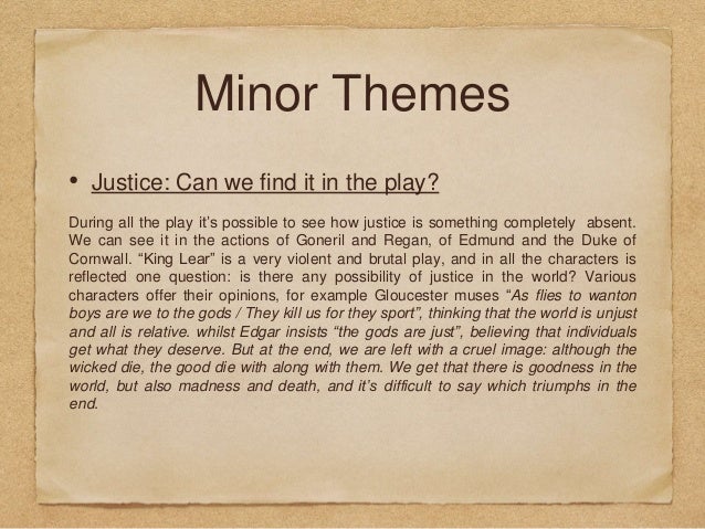 Shakespeare s king lear dramatically explores the concept of justice presents a frightening vision of what happens in a society when those who control the justice system are cruel corrupt.