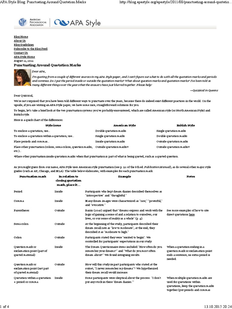 Punctuation Inside Or Outside Quotes Apa